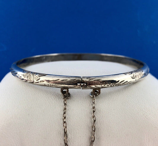 Vintage Sterling Silver 925 Floral Scroll Engraved Bangle Bracelet