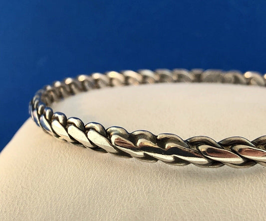 Vintage Mexico Taxco Sterling Silver 925 Ribbed Wave Lock Bangle Bracelet