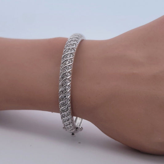 Diamonique .925 Sterling Silver Cubic Zirconia Studded Hinge Bracelet
