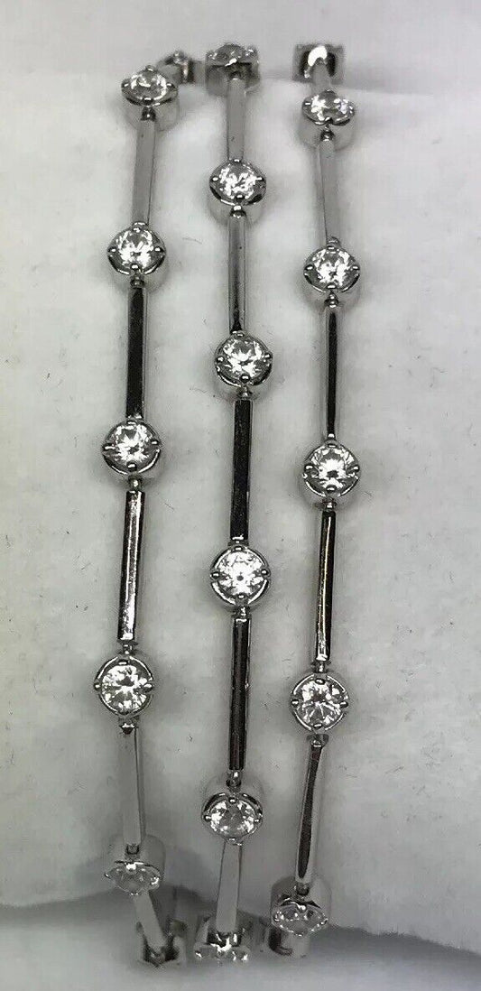 Designer SW Sterling Silver 925 Cubic Zirconia Three Strand Station Bracelet