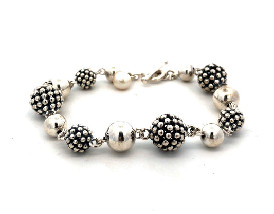 Michael Dawkins 925 Sterling Silver Pearl Textured Ball Beaded Toggle Bracelet