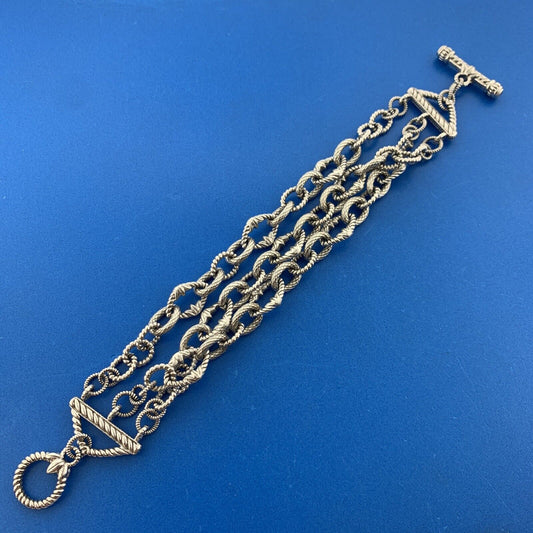 Judith Ripka 925 Sterling Silver Cubic Zirconia Triple Strand Toggle Bracelet