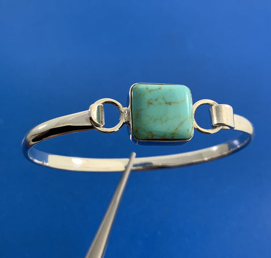 Artisan Mexico 925 Sterling Silver Square Turquoise Bangle Bracelet