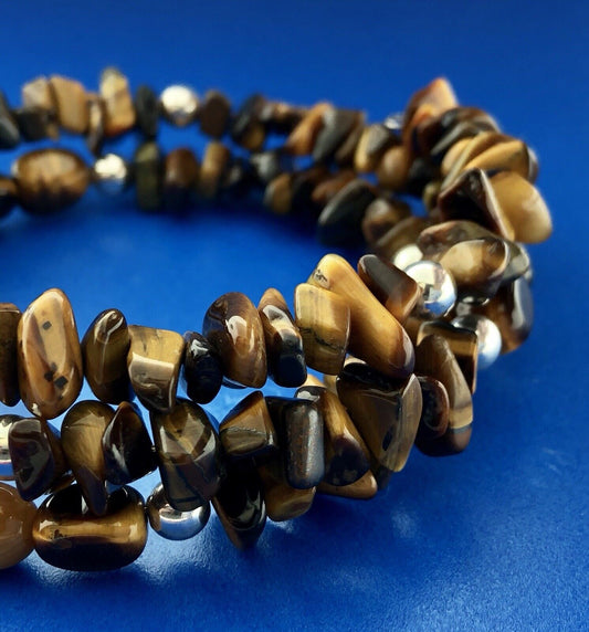 Sterling Silver Tigers Eye Bead Protection Three Wrap Flex Bracelet