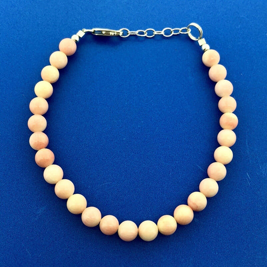 Beautiful 925 Sterling Silver Pink Coral Beads Fashion Bracelet