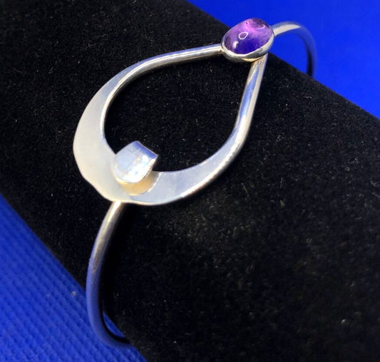 Oval Amethyst 925 Sterling Silver Cutout Hook Clasp Round Bangle Bracelet
