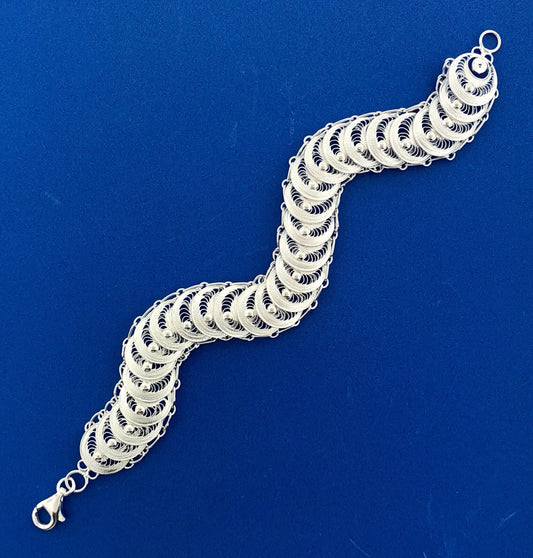 Milor Italy Sterling Silver 925 Filigree Bead Centipede Link Flex Bracelet