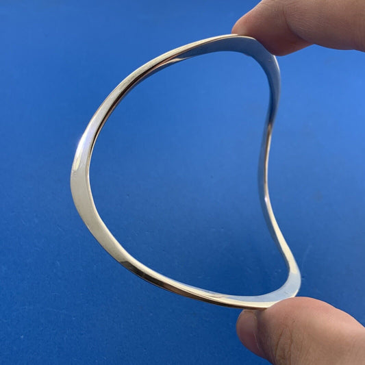 Modernist 925 Sterling Silver Crop Circle Wave Simple Bangle Bracelet