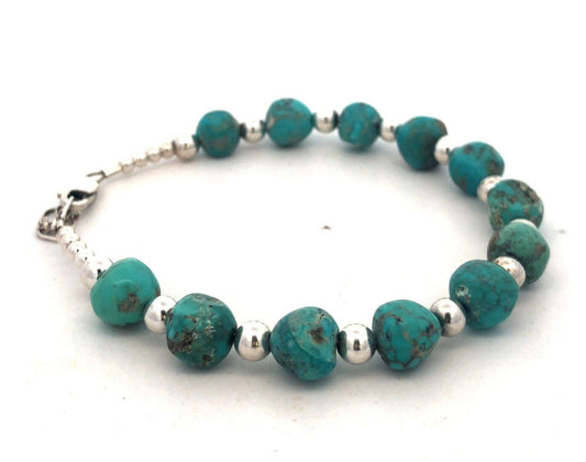 Estate 925 Sterling Silver Round Turquoise Beaded Bracelet