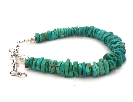 Estate 925 Sterling Silver Wheel Shaped Turquoise Beaded Bracelet