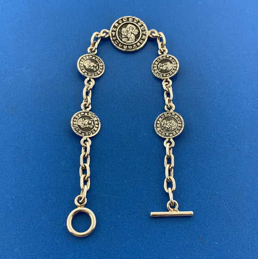 Vintage Taxco Mexico 925 Sterling Silver Aztec Design Medallion Toggle Bracelet