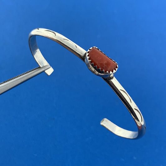 Old Pawn Native American 925 Sterling Silver Coral Child's Storyteller Bracelet