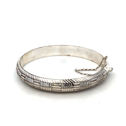 Vintage IBB 925 Sterling Silver Textured Round Hinged Bangle Bracelet