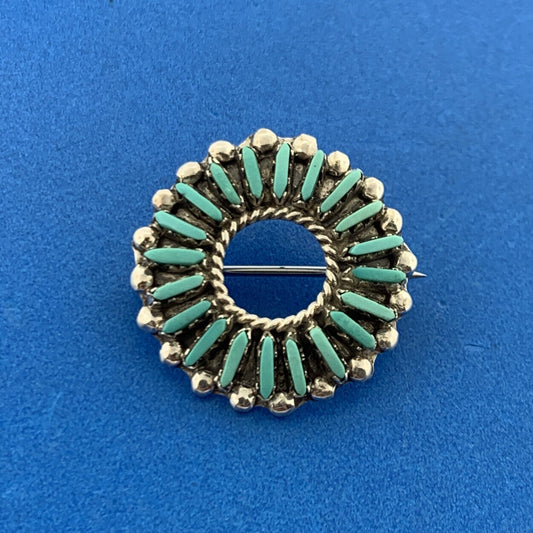 Vintage Native American 925 Sterling Silver Turquoise Petit Point Pendant Brooch