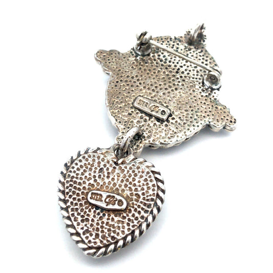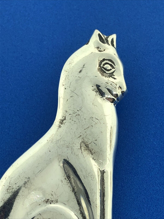 Retro 925 Sterling Silver Sitting Cat Kitten Siamese Scarf Pin Brooch Pendant