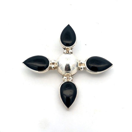 Mid Century Taxco Mexico 926 Sterling Silver Pear Black Onyx Pendant Brooch