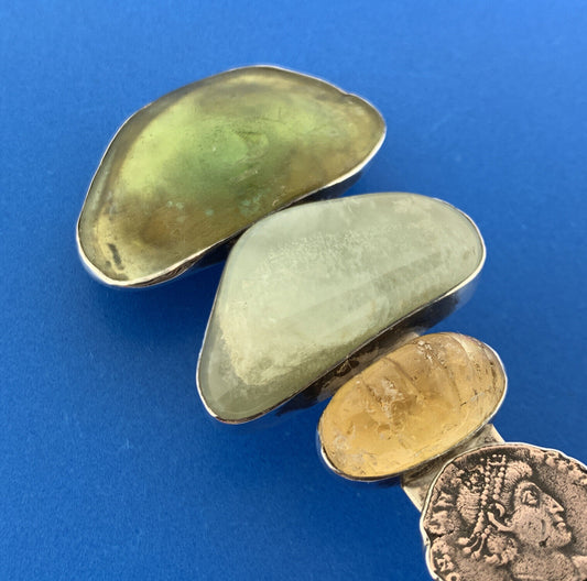 Vintage Rebecca Collins Sterling Silver 925 Roman Glass Coin Statement Brooch