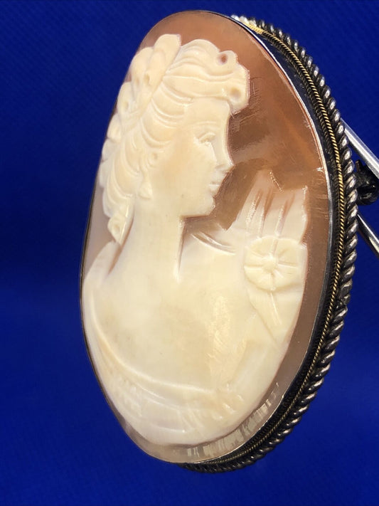 Victorian 925 Sterling Silver Carved Oval Cameo Statement Brooch Pendant