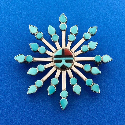Zuni Designer Vera Halusewa Sterling Silver 925 Turquoise Star Brooch Pendant