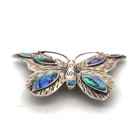 Designer CFU 925 Sterling Silver Abalone Textured Butterfly Combo Pendant Brooch