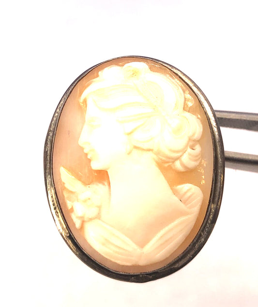 Vintage 800 Fine Silver Oval Cameo Pin Brooch Pendant