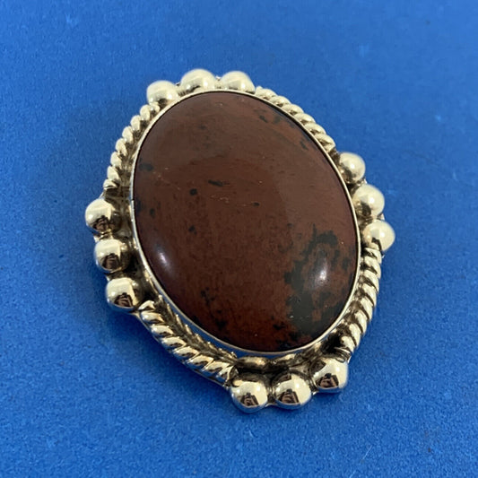 Designer CII Mexico 925 Sterling Silver Oval Jasper Statement Brooch Pendant