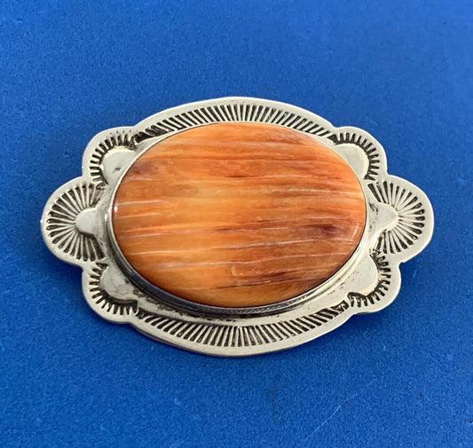 Native American Sterling Silver Oval Orange Spiny Turquoise Concho Pin Brooch