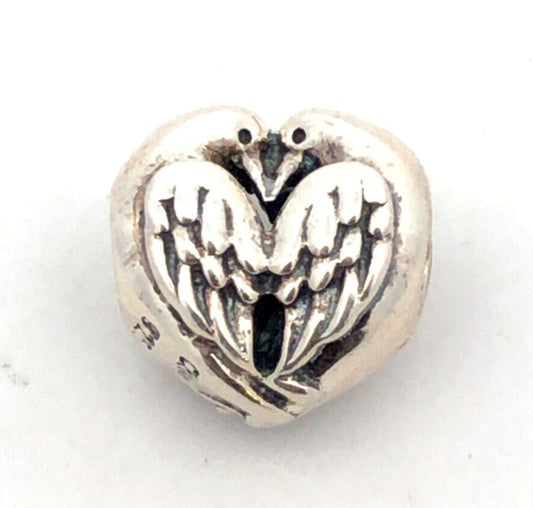 Designer CHAMILIA 925 Sterling Silver Love Doves Heart Bead Slide Bracelet Charm
