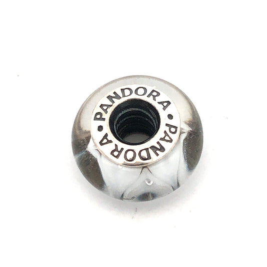 Retired PANDORA 925 Sterling Silver 790921 White Murano Looking Glass Bead Charm