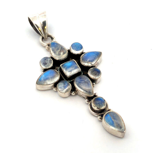 Vintage 925 Sterling Silver Pear Round Moonstone Cabochon Cross Pendant