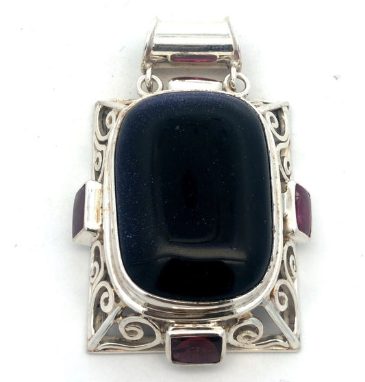 Estate 925 Sterling Silver Rectangle Blue Sandstone Amethyst Statement Pendant