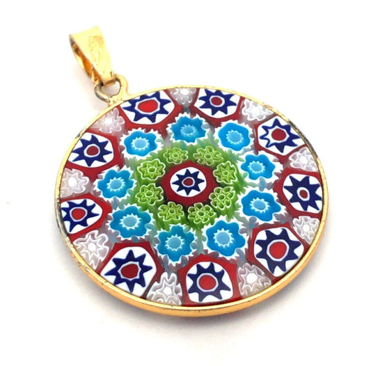 AMV Italy Sterling Silver Gold Vermeil Round Colorful Millefiori Glass Pendant