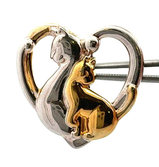 Vintage Lenox 925 Sterling Silver Gold Vermeil Two-Tone Cats Heart Pendant