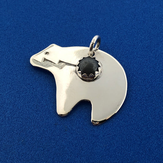 Native American Artist Herbert Tsosi 925 Sterling Silver Gray Stone Bear Charm
