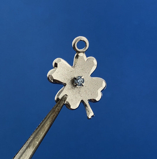Estate Sterling Silver Blue CZ Florentine Polished Good Luck 4 Leaf Clover Charm