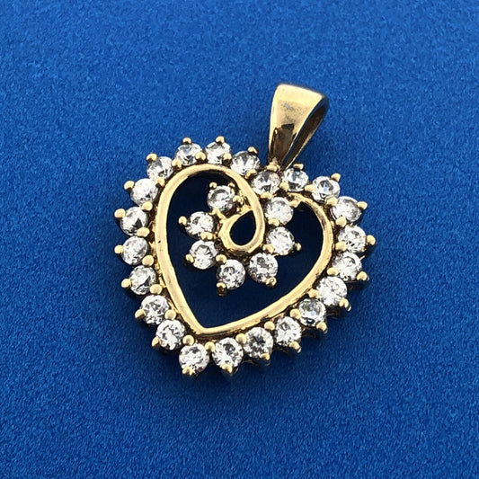 Designer JJT Sterling Silver Vermeil Gold Tone Cubic Zirconia CZ Heart Pendant
