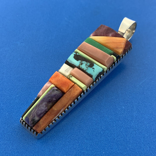 Stunning Sterling Silver 925 Multi-Stone Rainbow Tall Obelisk Statement Pendant
