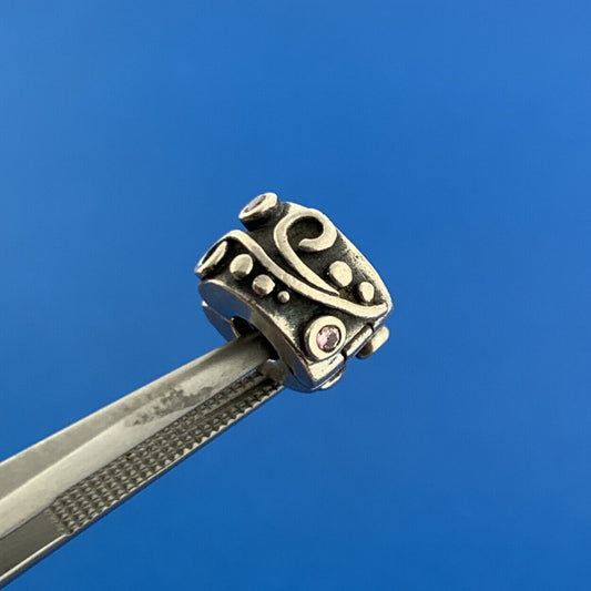 PANDORA 925 Sterling Silver 790380PCZ Pink CZ Tendril Clip Slide Bracelet Charm