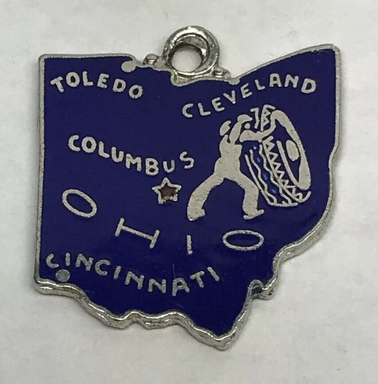 Vintage Sterling Silver 925 Blue Enamel Ohio State Cities Charm Bracelet Charm