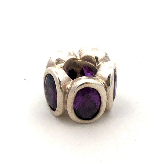 PANDORA ALE 925 Sterling Silver Oval Amethyst Oval Lights Spacer Charm 790311