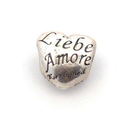 Retired PANDORA 925 Sterling Silver Language of Love Amore Heart Charm 791111