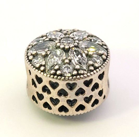 PANDORA 925 Sterling Silver Cubic Zirconia Studded Star & Hearts Bead Charm