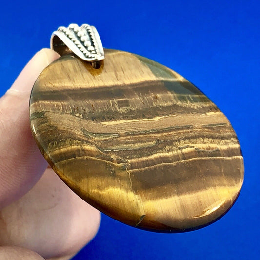 Retro 925 Sterling Silver Tiger Eye Worry Stone Chakra Statement Pendant