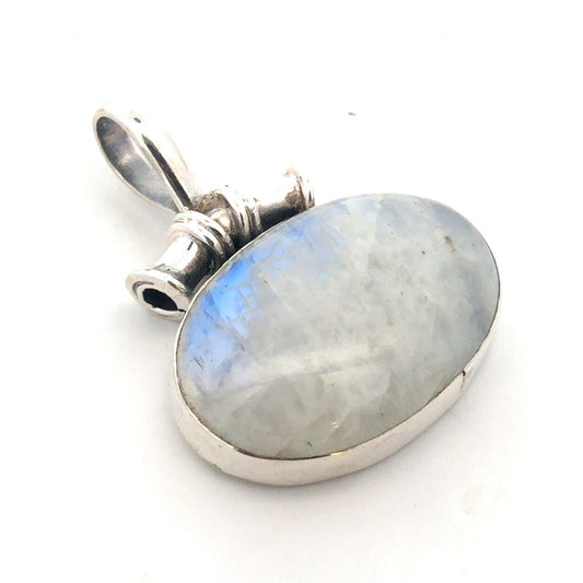 Vintage 925 Sterling Silver Oval Cabochon Moonstone Statement Pendant
