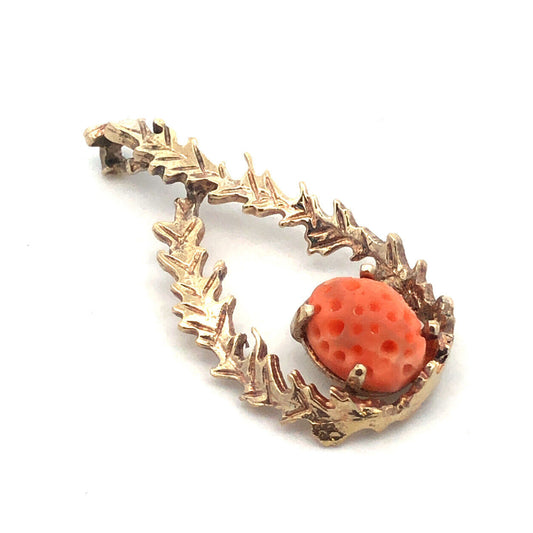 Designer WELLS 925 Sterling Silver Gold Vermeil Oval Coral Vine Leaf Pendant