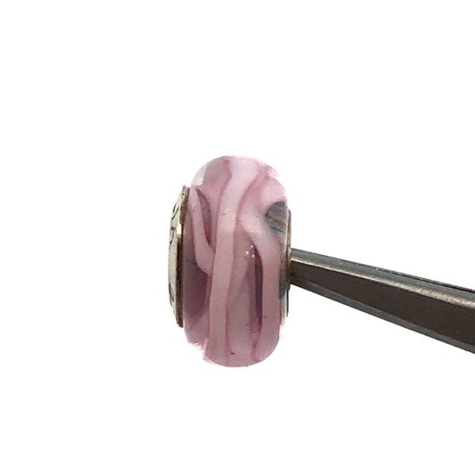Designer Chamilia Sterling Silver Pink Swirl Murano Glass Slide Bracelet Charm