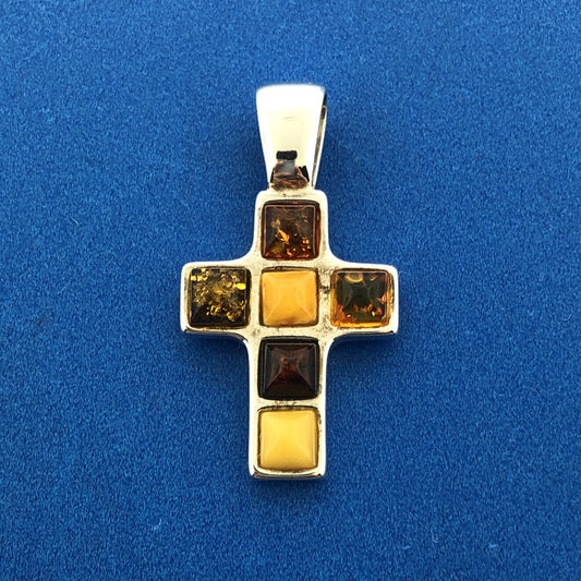 Vintage Poland Sterling Silver Baltic Amber Religious Communion Cross Pendant