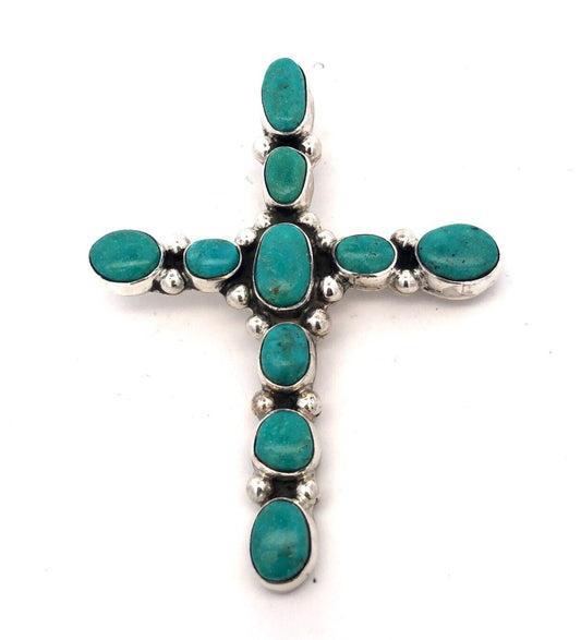 Estate 925 Sterling Silver Oval Turquoise Bezel Large Cross Statement Pendant