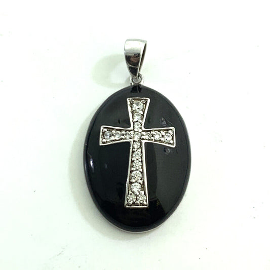 Designer 925 Sterling Silver Black Enamel Cubic Zirconia CZ Cross Pendant