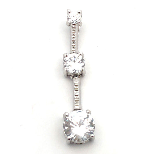 Designer J 925 Sterling Silver Round Cubic Zirconia CZ Trio Graduated Pendant